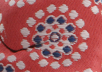 たて糸とよこ糸を組み合わせてつくる織物の一つ。色糸だけでなく、金糸あるいは平金箔をつかって織られた織物です。